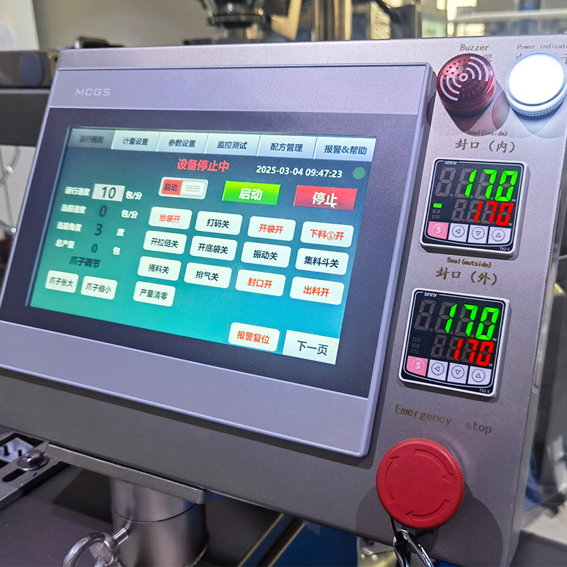 2、智能:采用PLC觸(chù)摸屏設置包(bāo)裝過程,可在顯示屏幕當中設置包裝(zhuāng)速度、容量、封口等參(cān)數,便能夠全自動(dòng)化執(zhí)行(háng)生產。