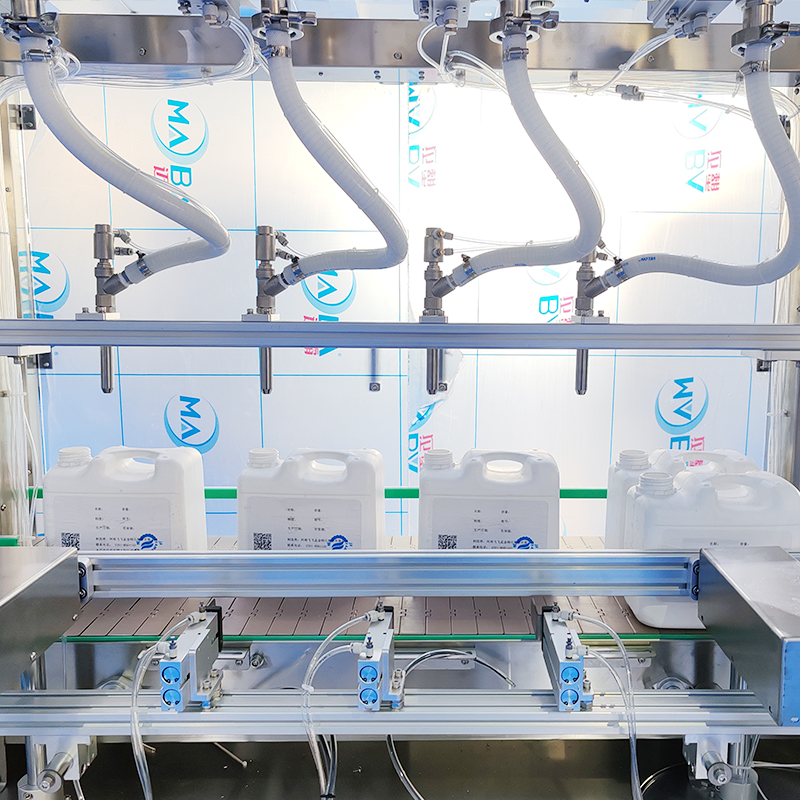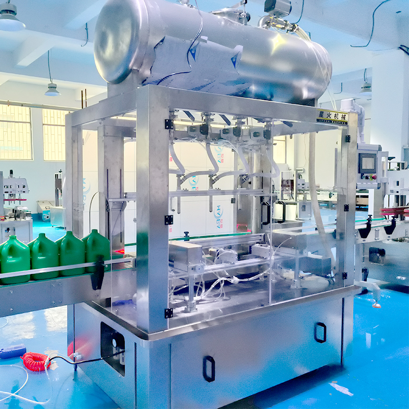3、多頭設計:多個灌裝頭可同時對多個容器進行統一充填,提高了生產效率,液體智能灌裝(zhuāng)設備的灌裝速度可通過參數進行(háng)靈活調整。